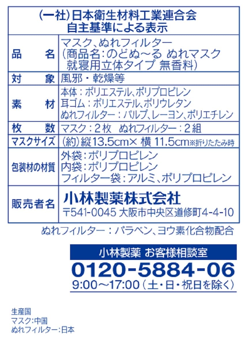 - のどぬ~るぬれマスク 就寝用立体タイプ 無香 2セット