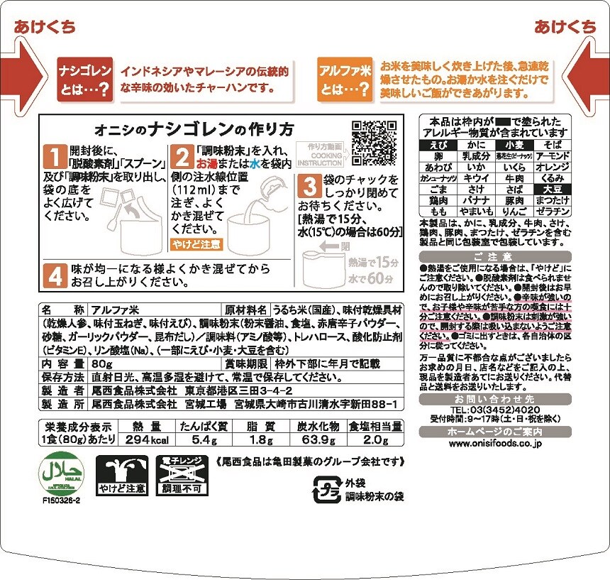 お湯で約15分、水で約60分で出来上がるご家庭で召し上がることができる本格的な「ナシゴレン」。