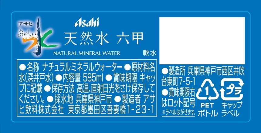 - アサヒ おいしい水 天然水 六甲 シンプルecoラベル PET 585ml