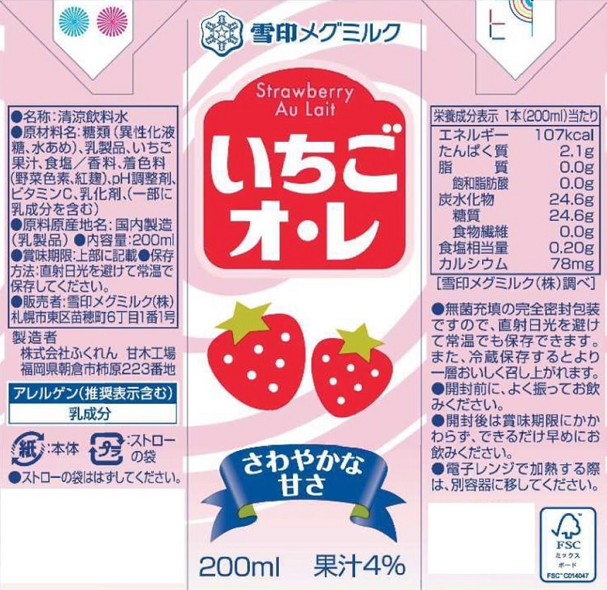 いちごオ・レ / フルーツオ・レ LL200ml