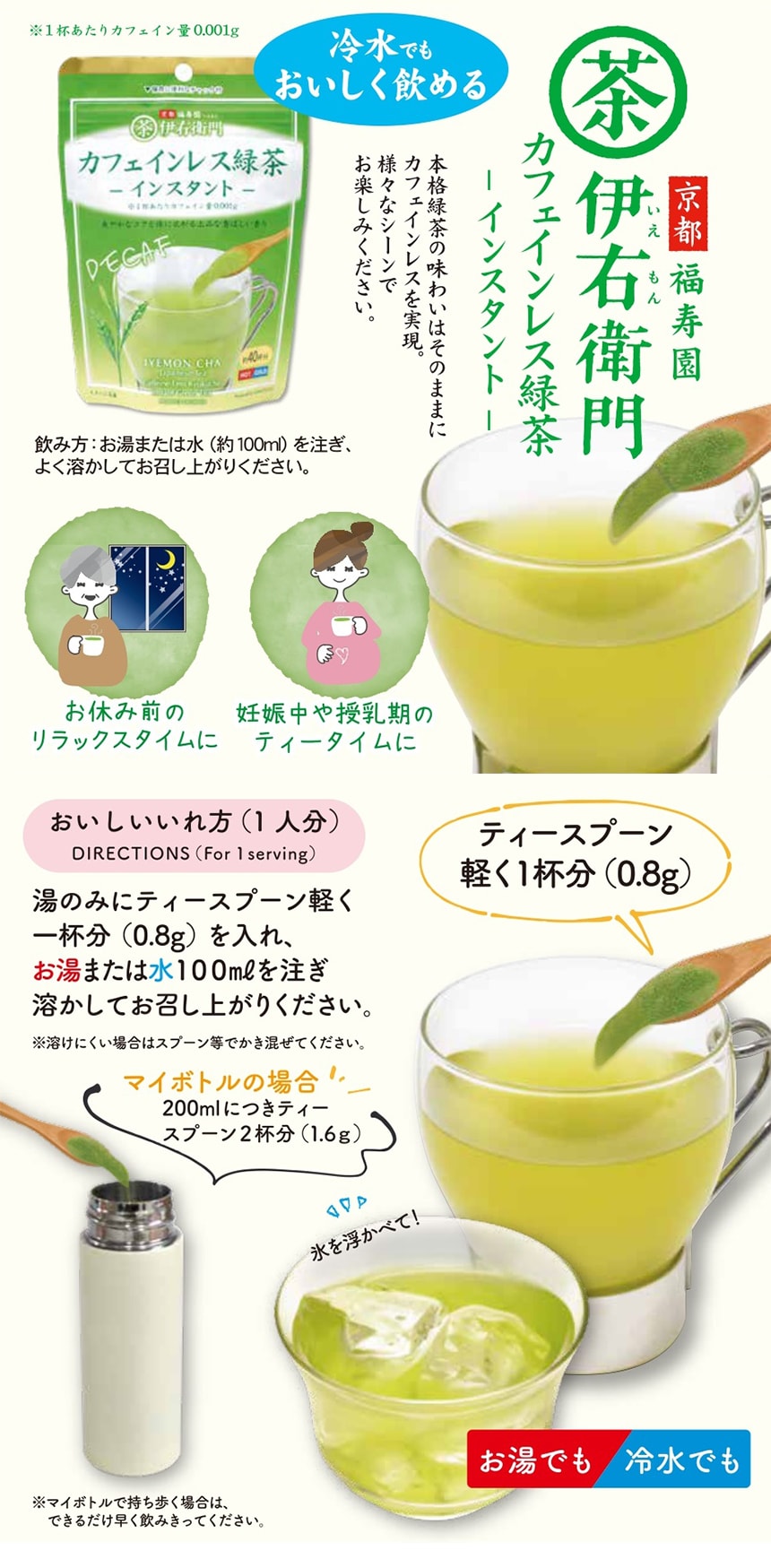 [18袋]宇治の露製茶 伊右衛門 カフェインレスインスタント緑茶 32g | 1杯あたりのカフェイン量0.001gに設定しました。