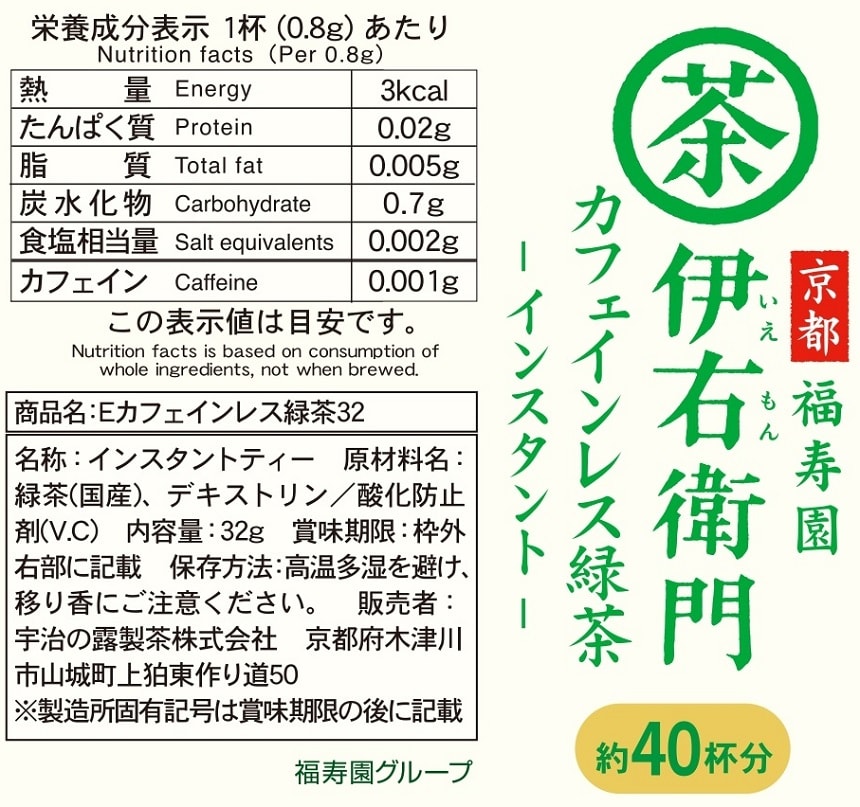 伊右衛門 カフェインレスインスタント緑茶 32g