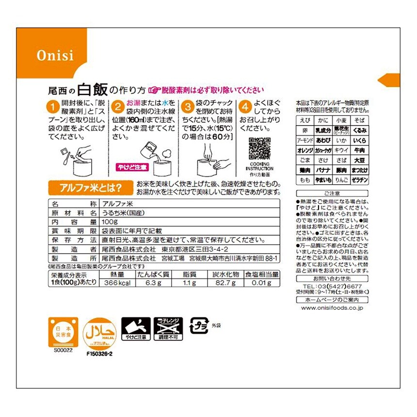 【アルファ米 白飯】