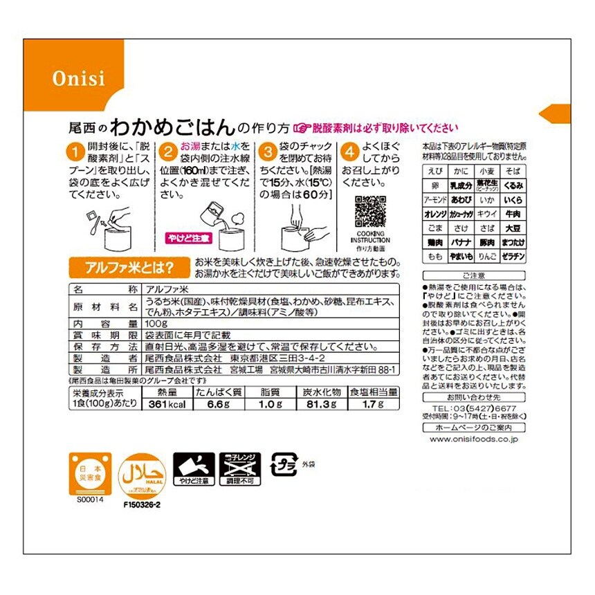 【アルファ米 わかめごはん】