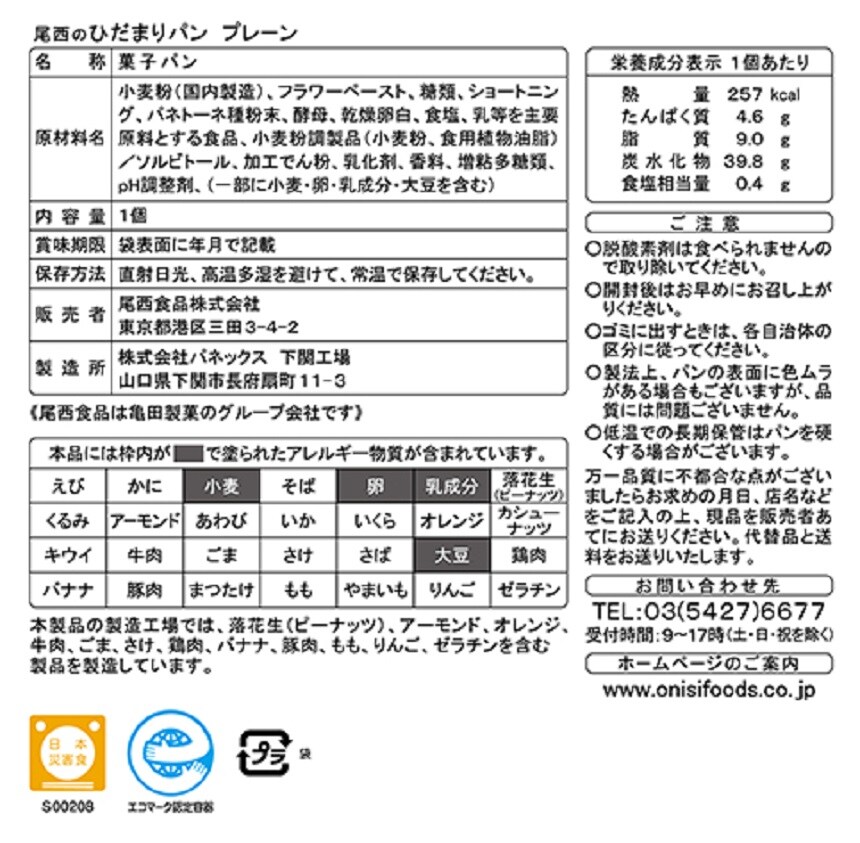【尾西のひだまりパン プレーン】