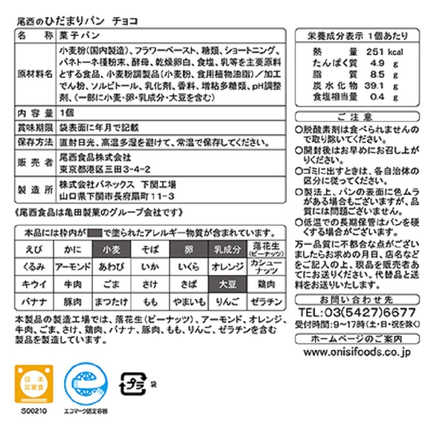 ・尾西のひだまりパン チョコ 1個×2袋