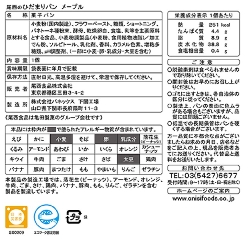 ・尾西のひだまりパン メープル 1個×2袋