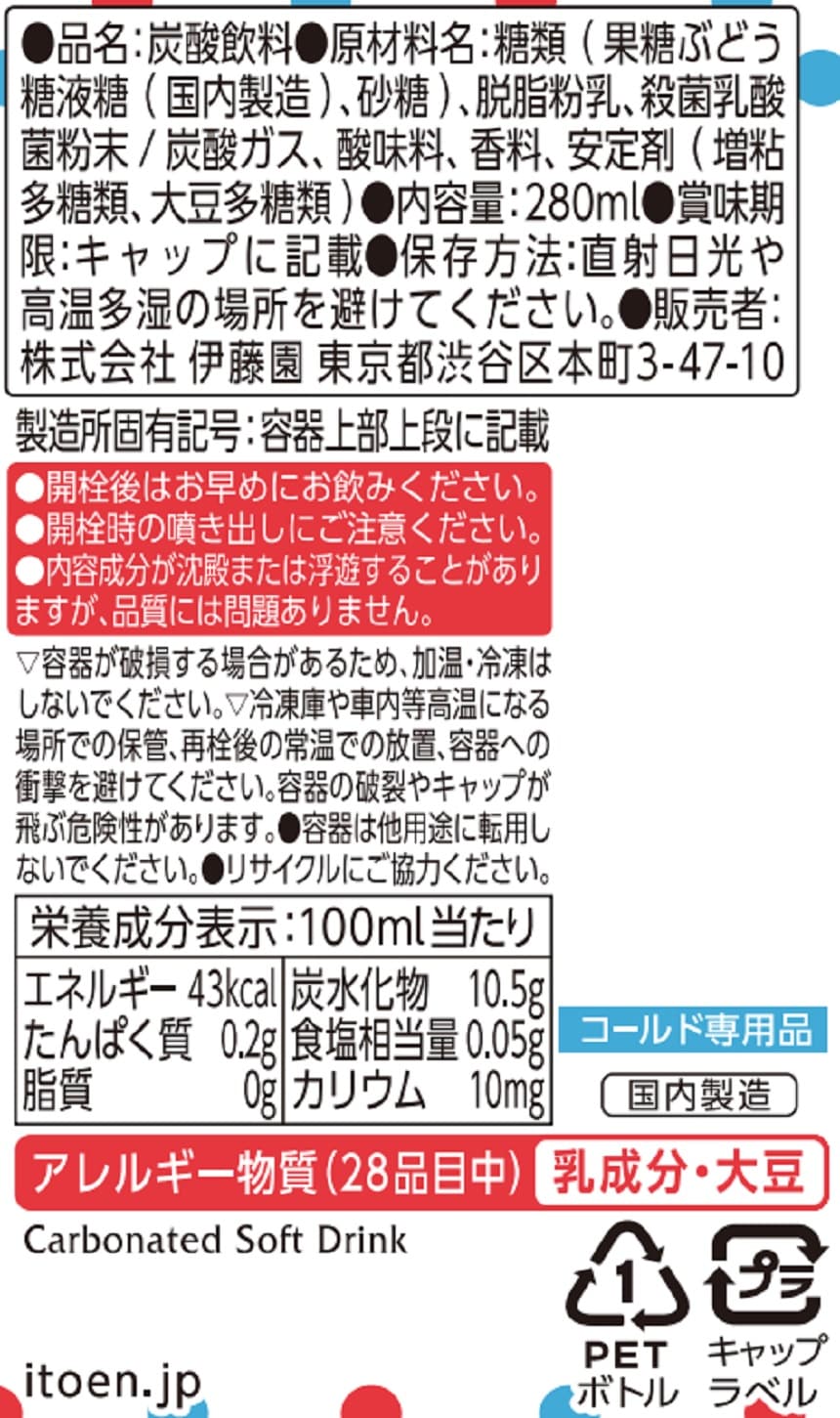 サンプル百貨店で買った炭酸飲料はほぼほぼ炭酸が抜けてることが当たり前で、この商品も超微炭酸って感じで炭酸はほとんど感じませんでした。例えるなら気の抜けたカル〇スソーダみたいな感じ、美味しいけどもっと炭酸が効いてたらもっと美味しかったんだろうなぁってひしひし感じました