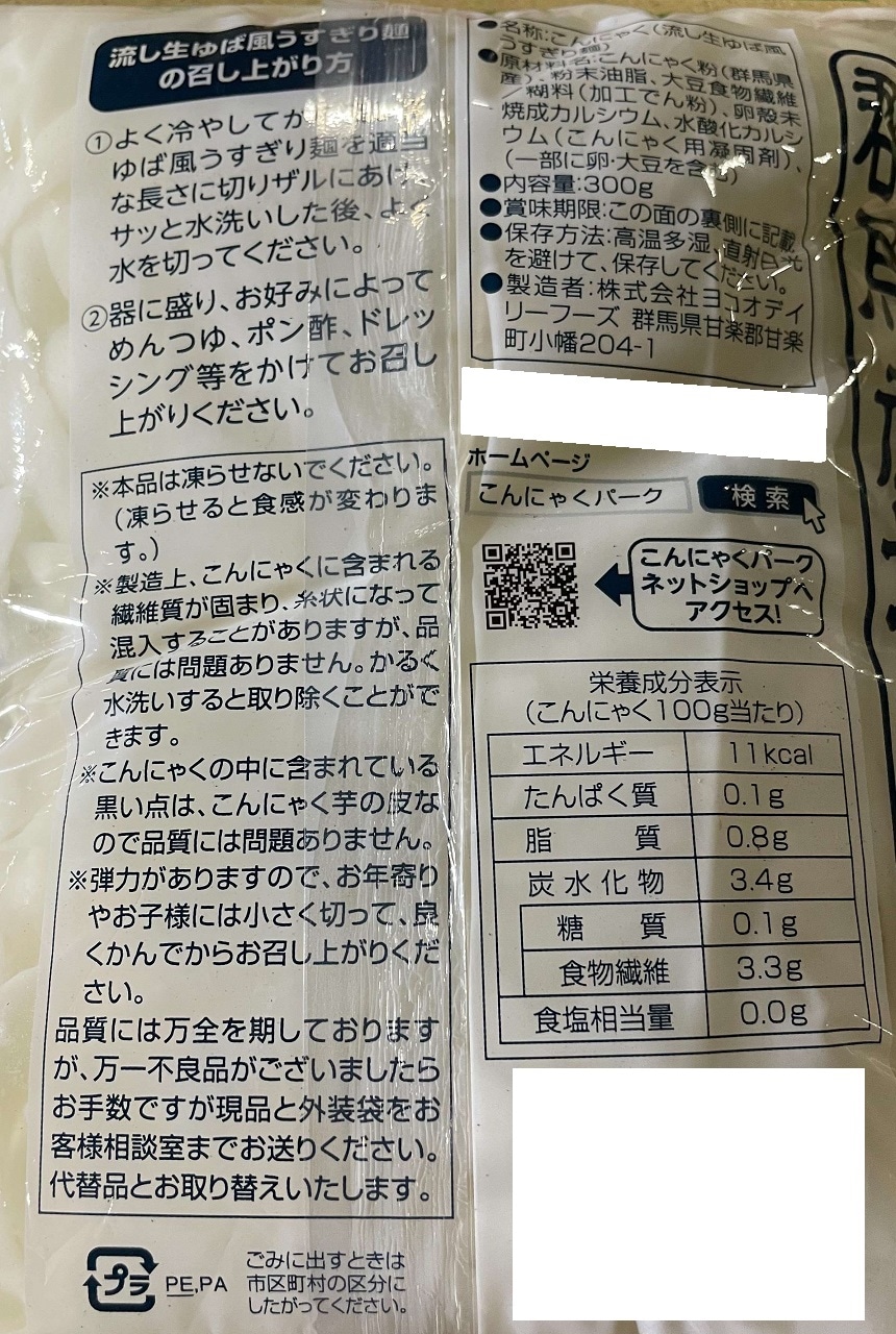 群馬県産こんにゃく粉を使用した流し生ゆば風のうすぎりこんにゃく麺です。