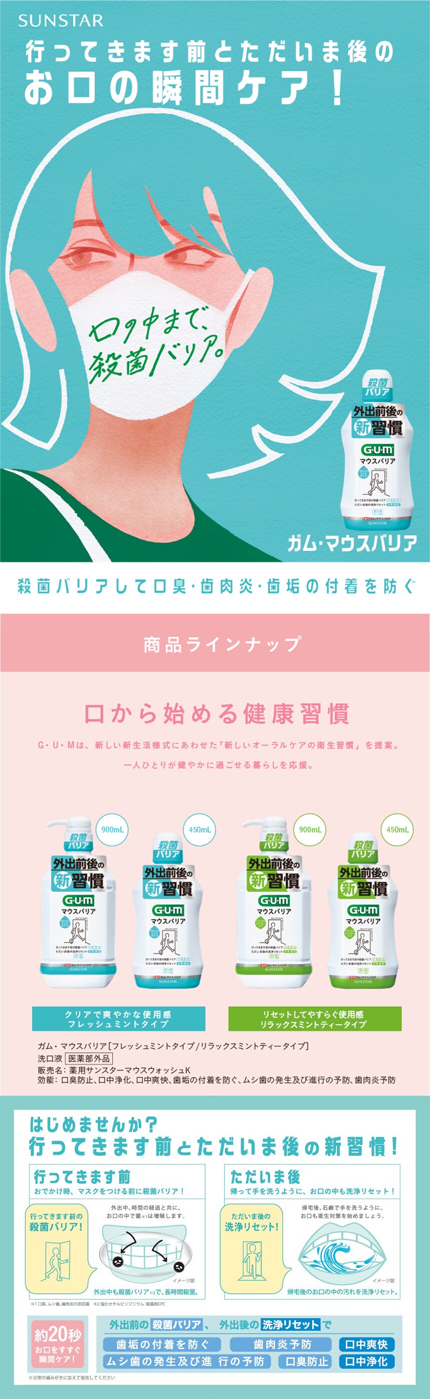 [4本]【医薬部外品】サンスター ガム・マウスバリア リラックスミントティー 900mL | 殺菌バリア&洗浄リセットでお口を清潔に保つマウスウォッシュ