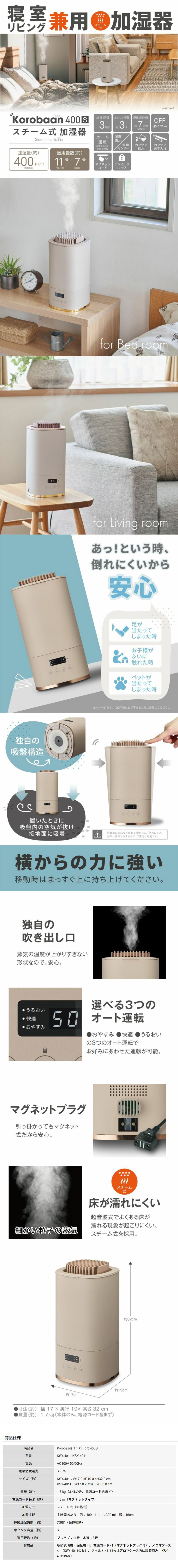 [ベージュ]ドウシシャ/寝室・リビング兼用 スチーム式加湿器「コロバーン」|水を注ぎやすい着脱式フタ採用!横からの力に強い転倒防止機能 ※1。沸騰させた蒸気だからキレイに加湿!湿度がわかるモニター付!