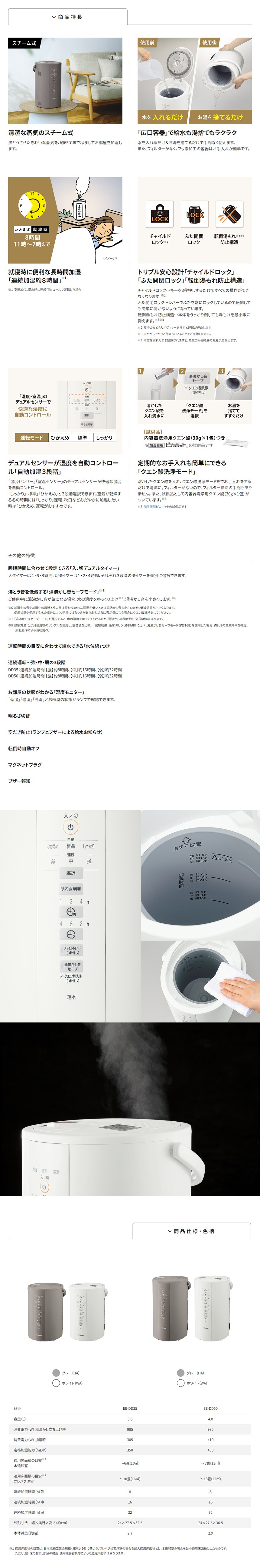 ※お届けの商品は【[3.0L/グレー] 象印(ZOJIRUSHI)/スチーム式加湿器 「長時間加湿タイプ」 (適応畳数:洋室~10畳/和室6畳)/EE-DD35-HA】となります。