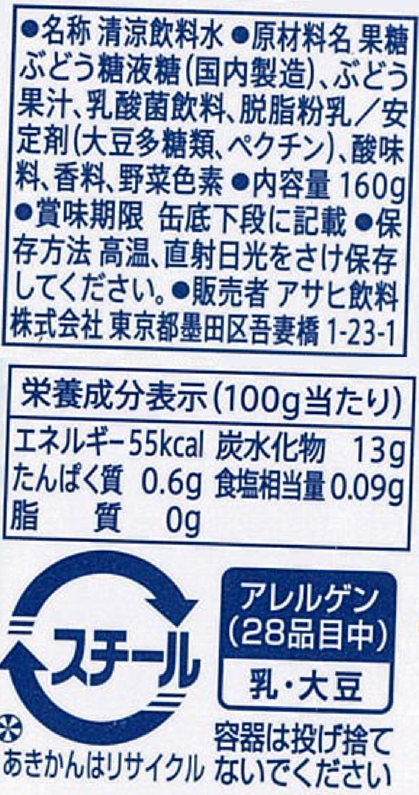 ・ぶどうとカルピス 160g×6本