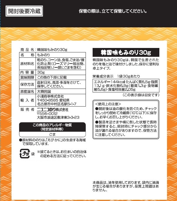 ・韓国味もみのり 30g×3個(賞味期限:2024/05/07)