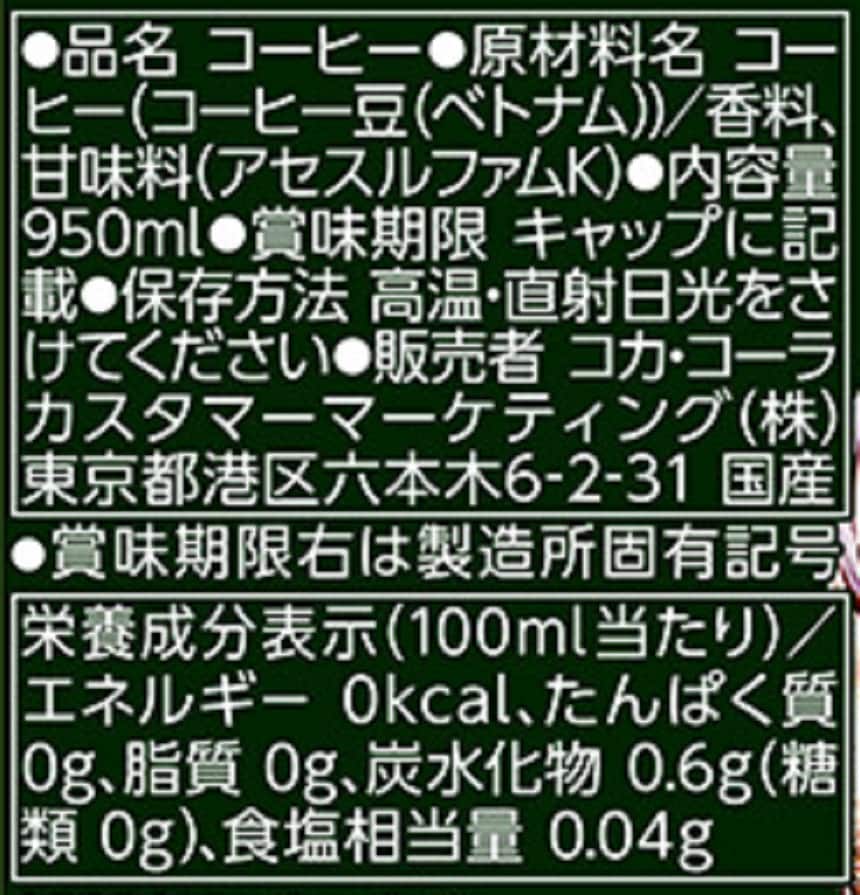 - ジョージア カフェ ボトルコーヒー 甘さひかえめ PET 950ml