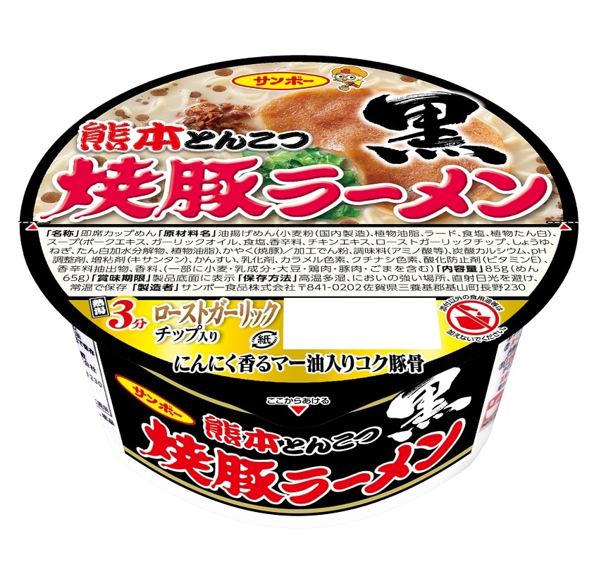 「焼豚ラーメン 長浜とんこつ」は、九州で長年愛され続けているサンポー食品の焼豚ラーメンをあっさりながらもコクがある長浜とんこつ風に仕上げました。