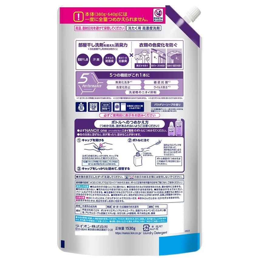 - NANOX one(ナノックスワン) 洗濯洗剤 ニオイ専用 つめかえ ウルトラジャンボ 1530g