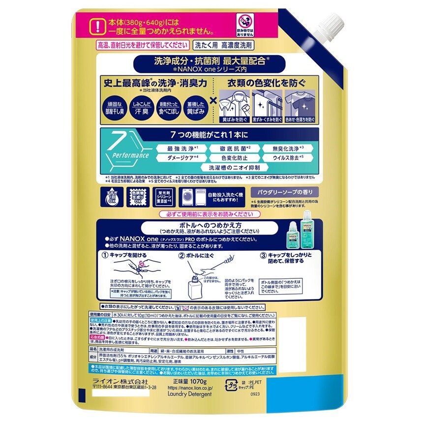 - NANOX one Pro(ナノックスワンプロ )洗濯洗剤 つめかえ 超特大 1070g