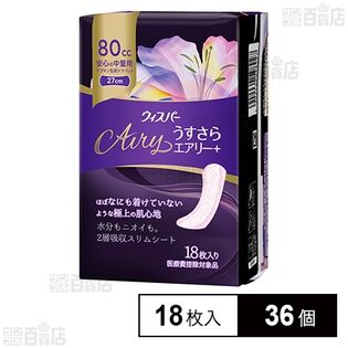 [36個]P&Gジャパン ウィスパー うすさらエアリー+ 女性用 吸水ケア 80cc 安心の中量用 ナプキン型尿ケアパッド 27cm 18枚 | ほぼなにも着けていないような極上の肌心地
