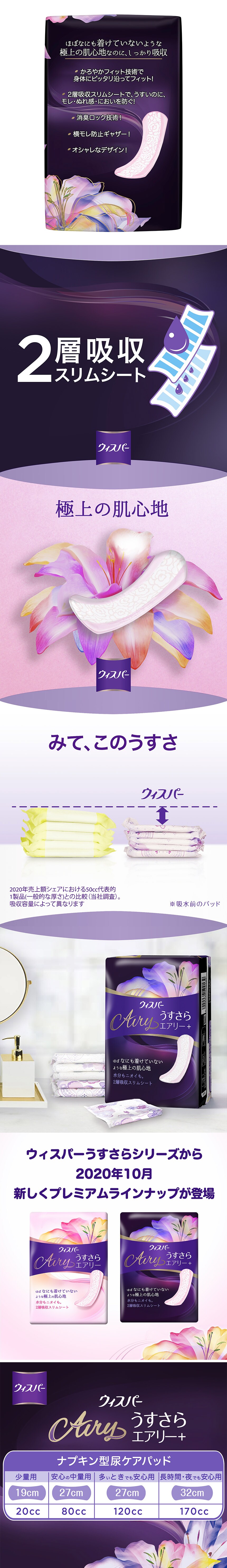 - ウィスパー うすさらエアリー+ 女性用 吸水ケア 80cc 安心の中量用 ナプキン型尿ケアパッド 27cm 18枚