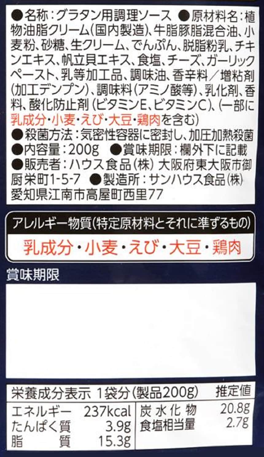 ・The Creamy <海老・ホタテで作るグラタン用ソース> 200g×8個 (賞味期限:2024/01/31)