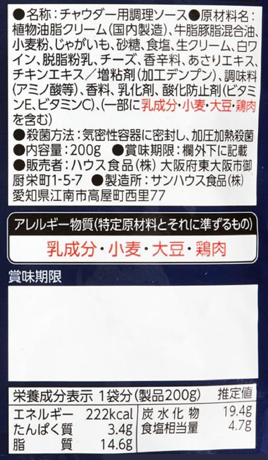 ・The Creamy <あさりで作るチャウダー用ソース> 200g×6個 (賞味期限:2023/12/31)