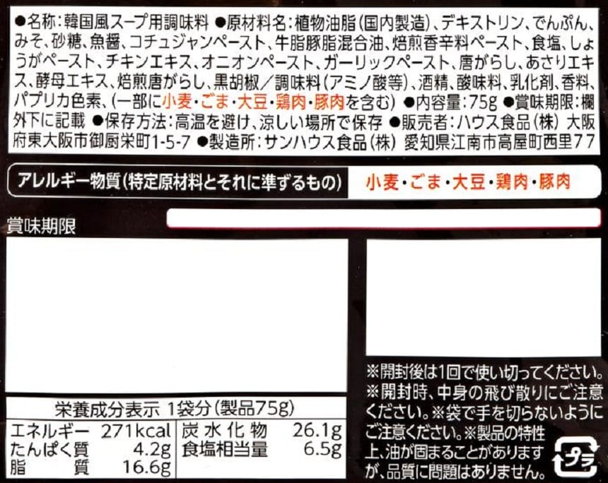 ・黒胡椒の華やかな香りや、焙煎唐辛子の甘香ばしい香りにコチュジャン・魚介の豊潤な旨みが特徴です。