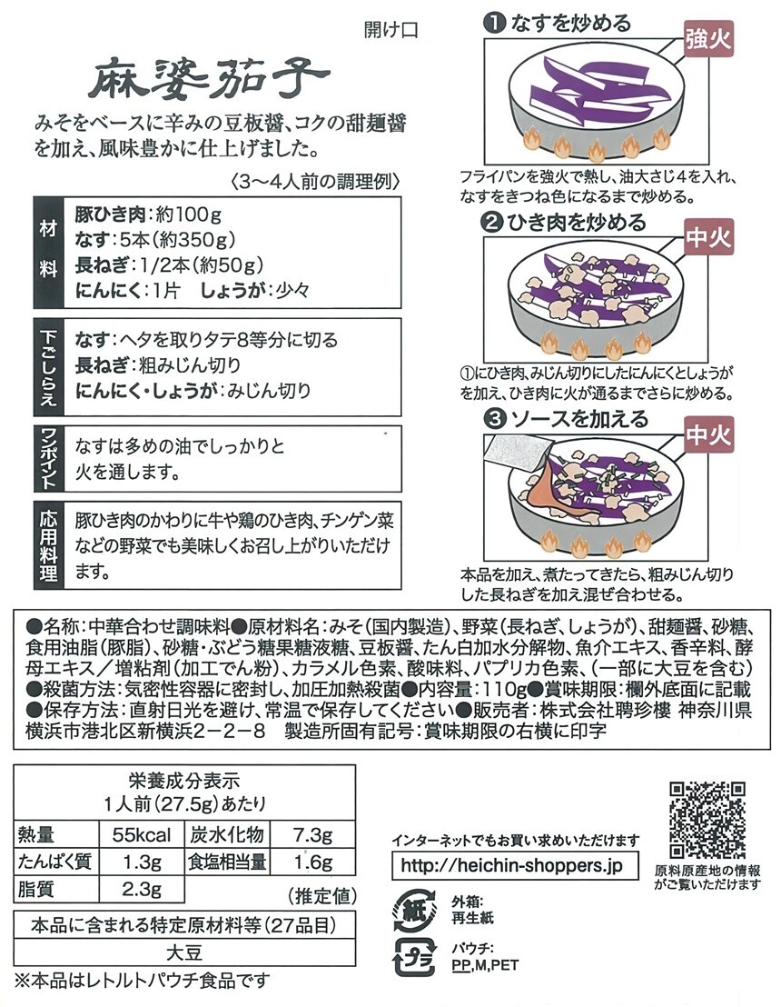 - ・聘珍茶寮 麻婆茄子 110g×20個(賞味期限:2024/03/01)