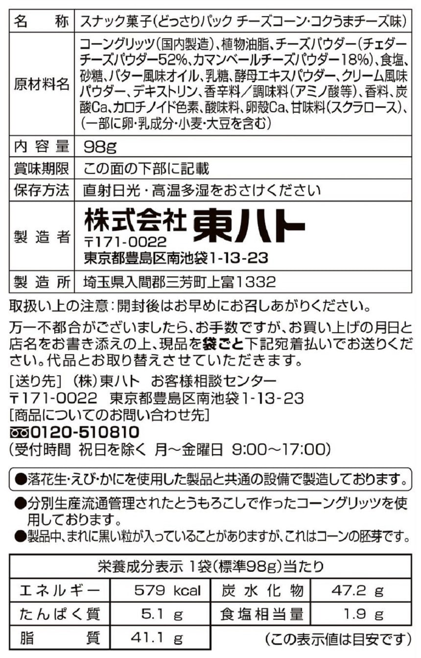 [2種計20袋]東ハト どっさりパック チーズコーン コクうまチーズ味 98g / カレーコーン マイルドカレー味 98g | どっさり入った大容量パック