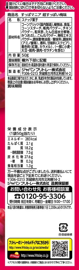 すっぱさが好きな方のための「熱狂スナック」すっぱマニア。口に入れた瞬間の強烈な酸味と梅のすっぱさをとことん楽しめる味わいです。飛びぬけたすっぱさをご堪能ください。