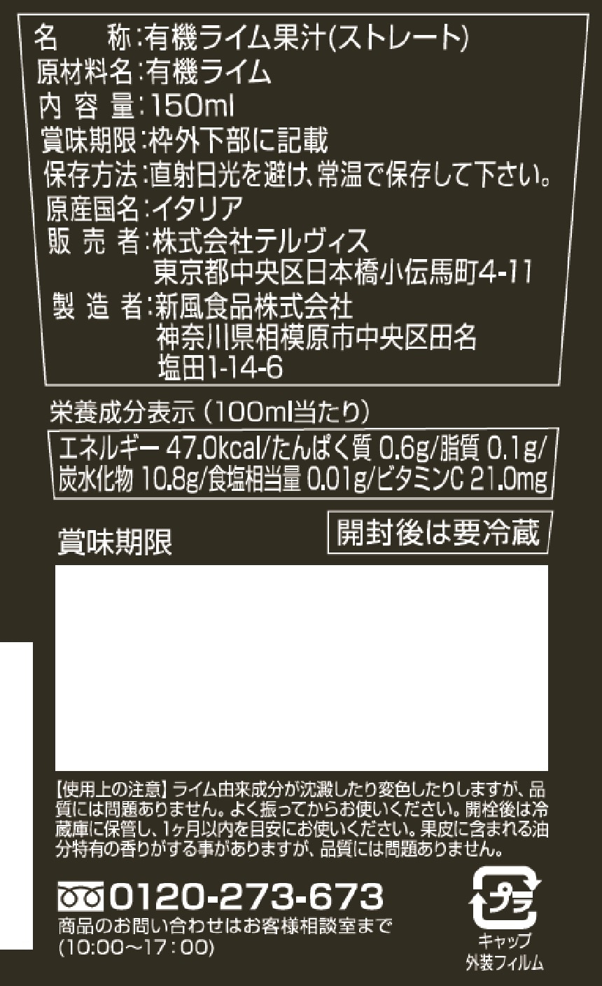 - 【体験コメント募集】有機ライム果汁 150ml