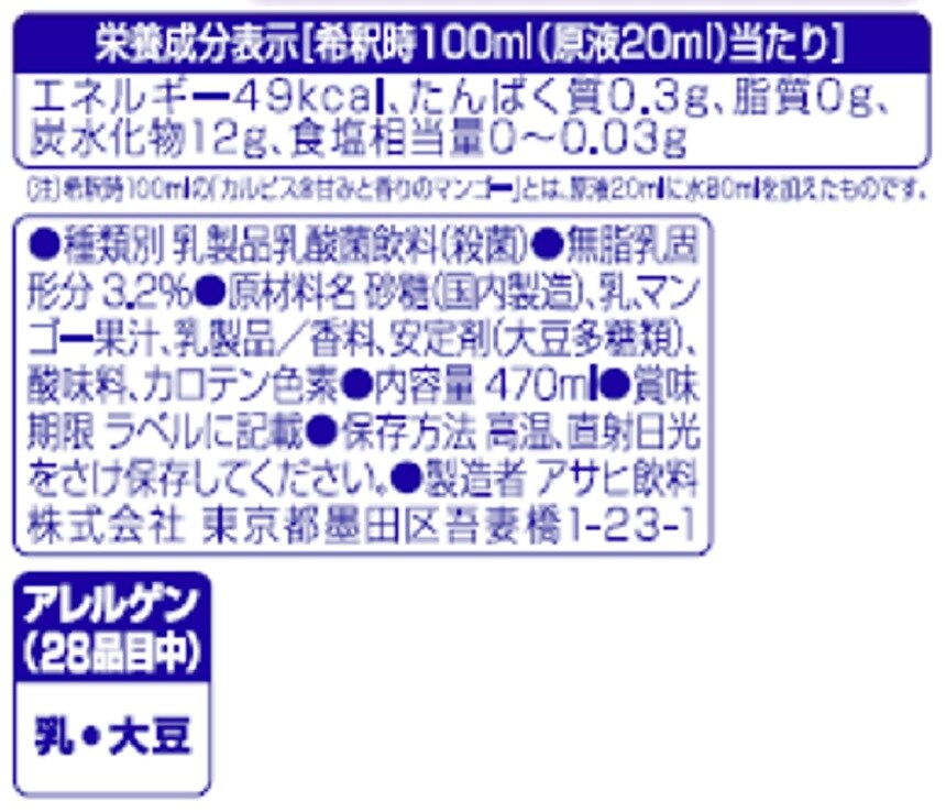 - 「カルピスⓇ甘みと香りのマンゴー」 プラスチックボトル 470ml