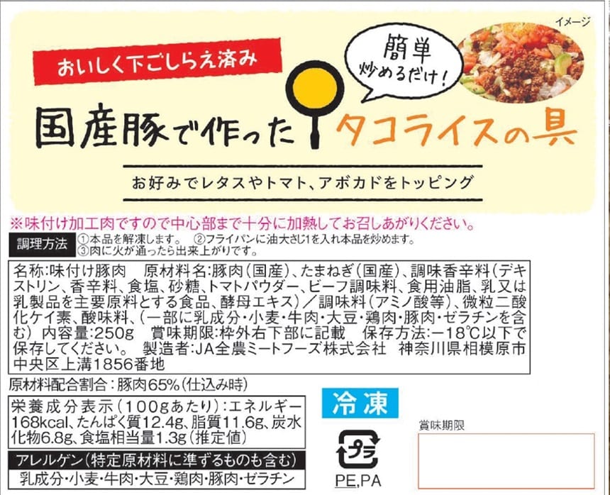・国産豚で作ったタコライスの具 250g×5袋(賞味期限:2024/02/27)