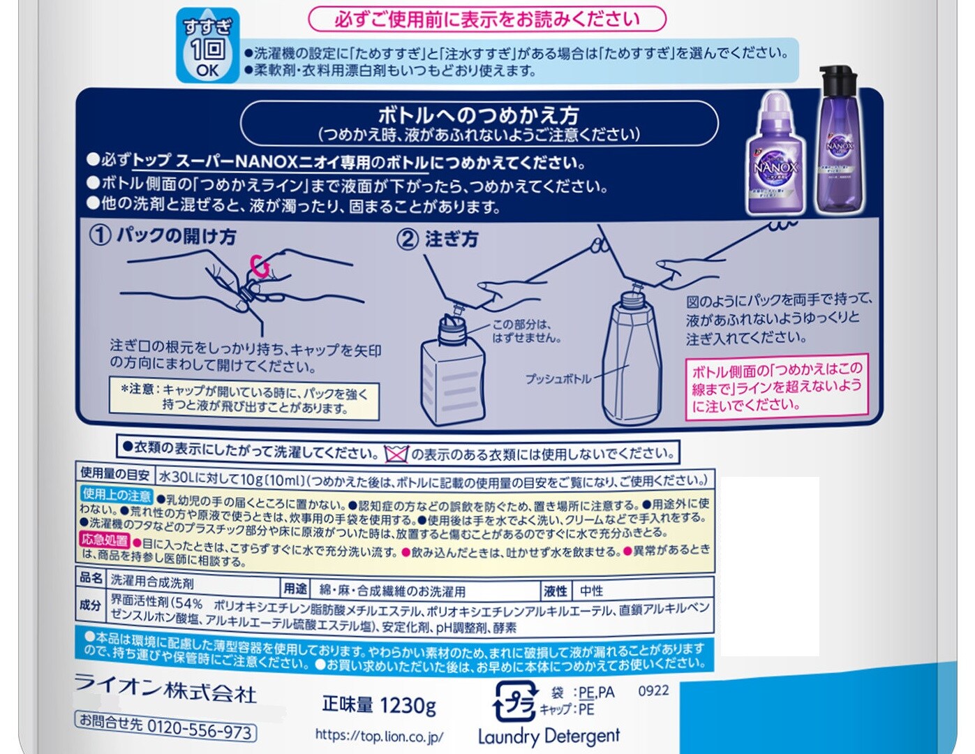 【トップ スーパーNANOX ニオイ専用 つめかえ用超特大サイズ】