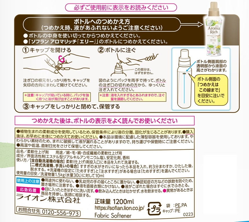 【ソフラン アロマリッチ エリ― つめかえ 特大 1200ml】