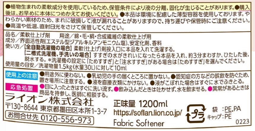 - ソフラン アロマリッチ ダイアナ つめかえ 特大 1200ml