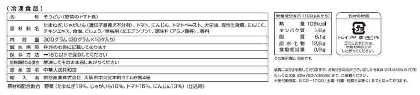 ・小分け惣菜 野菜のトマト煮 300g(30g×10食)×1個