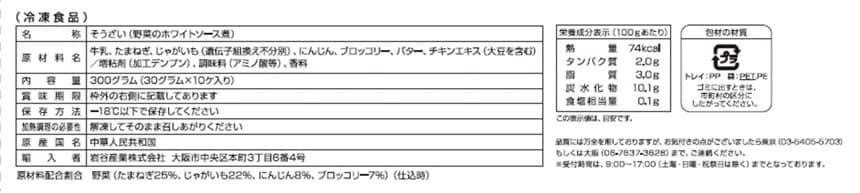 ・小分け惣菜 野菜のホワイトソース煮 300g(30g×10食)×1個