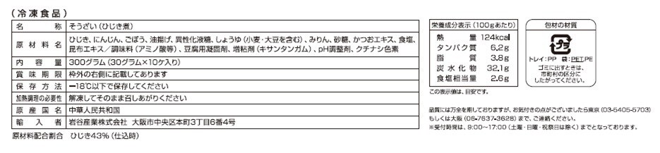 優しい味付けのひじき煮です。30g1食分ずつ小分けになっているので、必要な分だけ取り出してご使用いただけます。