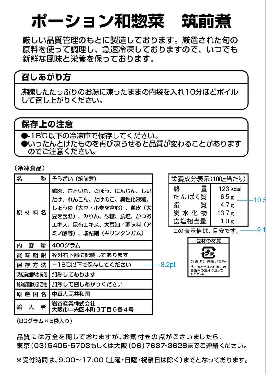 ・ポーション惣菜 筑前煮 400g(80g×5食)×1個