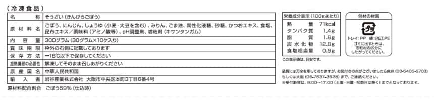 優しい味付けのきんぴらごぼうです。30g1食分ずつ小分けになっているので、必要な分だけ取り出してご使用いただけます。