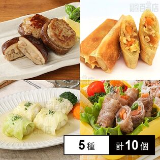 [冷凍]【5種計10個】簡単調理!JA全農ミートフーズの国産豚肉おかずセット(春巻、ロールキャベツ、ピーマン肉詰め、しいたけ肉詰め、野菜の肉巻き) | 国産の肉や野菜使用