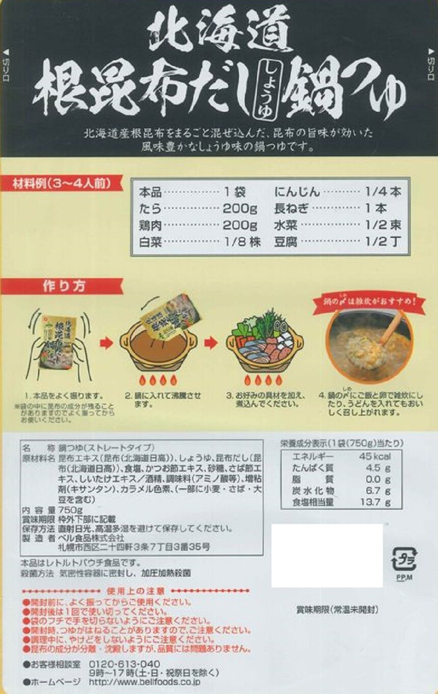 【北海道根昆布だししょうゆ鍋つゆ】