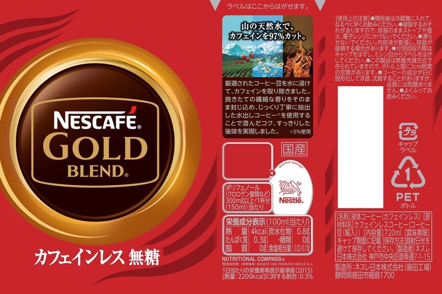 ・ネスカフェ ゴールドブレンド カフェインレス 無糖 720ml×1本