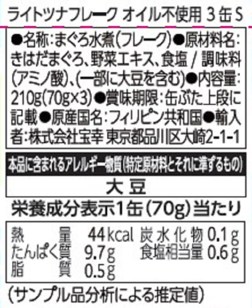 - ライトツナフレーク オイル不使用 フィリピン産 70g×3缶入
