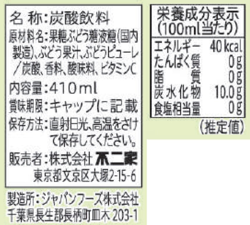 日頃強い炭酸を飲んでいるせいか炭酸は感じずマスカットジュースって感じでした