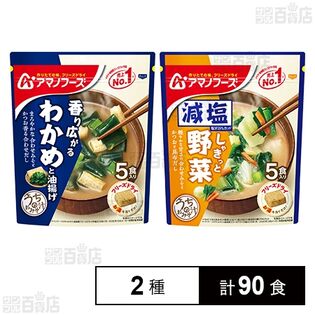 [2種計90食]アマノフーズ うちのおみそ汁 わかめと油揚げ 5食 / 減塩うちのおみそ汁 野菜 5食 | 具材のおいしさを手軽に楽しめる、小分けの5食入りパウチパック♪