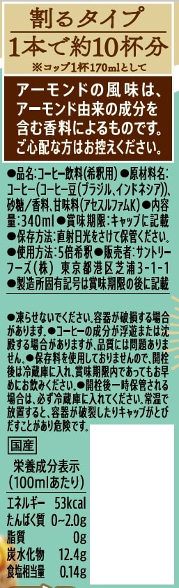[48本]サントリー食品インターナショナル 割るだけボスカフェ アーモンドラテ 340ml | 割るだけ!イエカフェ濃縮コーヒー