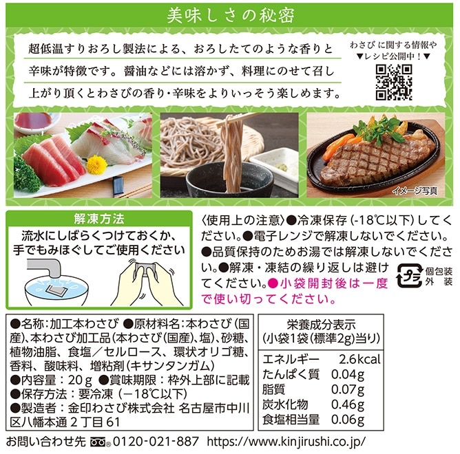 - ・冷凍薬味国産おろし本わさび 20g×10個