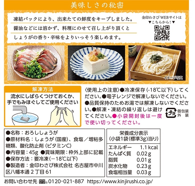 - 冷凍薬味 国産おろし本わさび 20g / 国産おろししょうが 45g